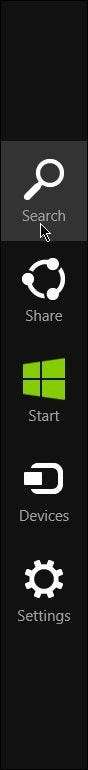หากคุณใช้ Windows 8 จะแนะนำแถบ "ชาร์ม" ซึ่งสามารถเข้าถึงได้จาก "มุมร้อน" ด้านบนหรือด้านล่างขวา เพียงลากตัวชี้เมาส์ไปที่มุมใดมุมหนึ่งจนกระทั่ง Charms ทั้งห้าปรากฏที่ขอบด้านขวาของหน้าจอ ลากตัวชี้เมาส์แล้วคลิกที่ค้นหา (คุณสามารถเข้าถึงทางลัดการค้นหาผ่านแป้นพิมพ์ลัดโลโก้ Windows + Q)