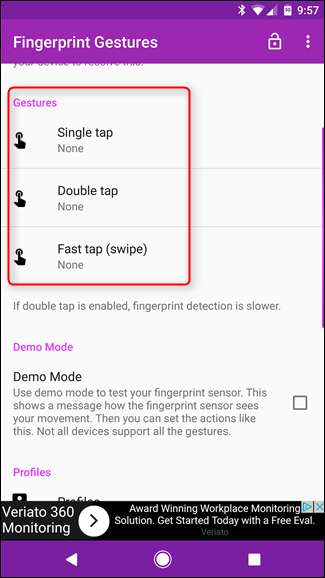 เมื่อเปิดใช้งานแอปคุณ สามารถ เริ่มตั้งค่าท่าทางสัมผัสของคุณสำหรับการแตะครั้งเดียวการแตะสองครั้งและการแตะ / การปัดอย่างรวดเร็ว แต่! ฉันขอแนะนำให้เลื่อนลงมาเล็กน้อยและดูโหมดสาธิตก่อน