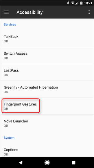 จากที่นี่ให้ค้นหา "ท่าทางสัมผัสลายนิ้วมือ" แตะรายการนั้นและเปิดใช้งาน peasy ง่าย คุณสามารถกลับออกจากการตั้งค่านี้ได้เมื่อเปิดอยู่