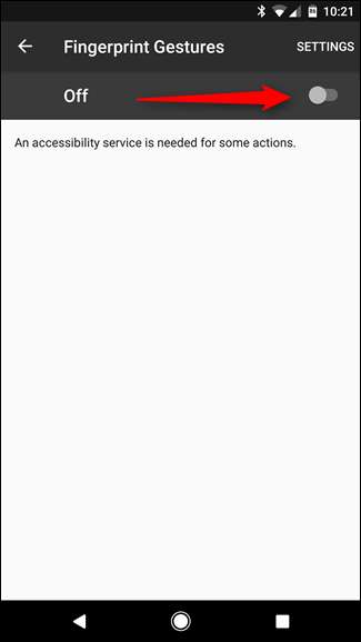 เมื่อคุณเริ่มการทำงานของแอปสิ่งแรกที่คุณต้องทำคือเปิดใช้งาน สลับแถบเลื่อนเล็ก ๆ ที่ด้านบนเพื่อเริ่มใช้แอพ