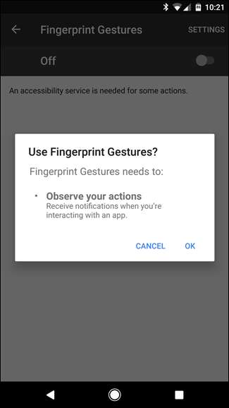 นอกจากนี้ยังควรค่าแก่การกล่าวถึงว่าฟังก์ชันบางอย่างของแอปเช่นการเปิดเมนูล่าสุดจะต้องมีการเข้าถึงพิเศษ ข่าวดีก็คือคุณพยายามตั้งค่าท่าทางที่ต้องการสิ่งนี้มันจะแจ้งให้คุณทราบด้วยป๊อปอัป เพียงแตะ“ ตกลง” เพื่อส่งไปยังการช่วยการเข้าถึงโดยอัตโนมัติ