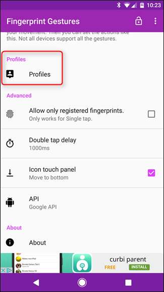 คุณยังสามารถตั้งค่าโปรไฟล์เฉพาะในท่าทางสัมผัสลายนิ้วมือ ซึ่งหมายความว่าคุณสามารถตั้งค่าแอปสำหรับสถานการณ์ต่างๆเช่นที่ทำงานหรือที่บ้านเป็นต้น หากต้องการบันทึกโปรไฟล์เพียงข้ามไปที่เมนูโปรไฟล์จากนั้นแตะ "โปรไฟล์ใหม่" ตั้งชื่อโปรไฟล์จากนั้นแตะ "สร้าง" เพื่อบันทึก