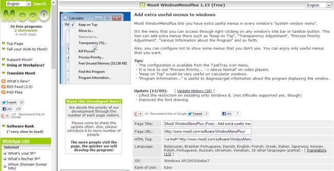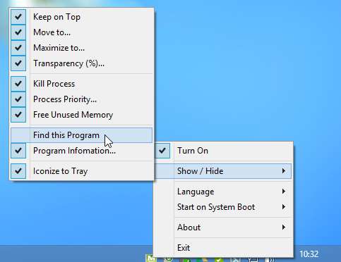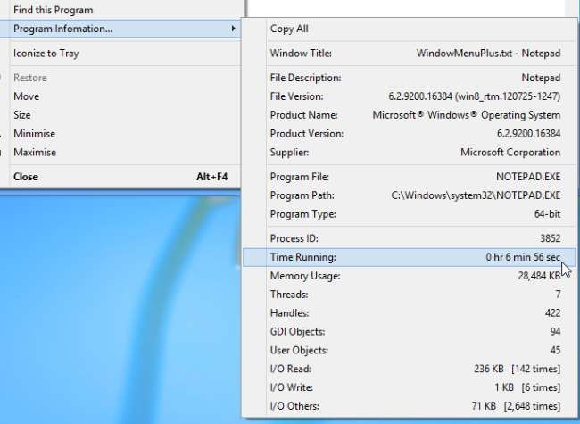 แต่ WindowMenuPlus ไม่เพียง แต่เกี่ยวข้องกับการย้ายหน้าต่างไปรอบ ๆ หน้าจอหรือเปลี่ยนรูปลักษณ์เท่านั้น แต่ยังสามารถใช้เพื่อค้นหาข้อมูลเกี่ยวกับแอปพลิเคชันและเพื่อกำจัดโปรแกรมที่ยุ่งยาก