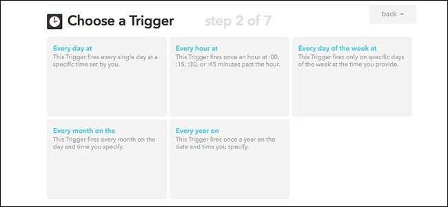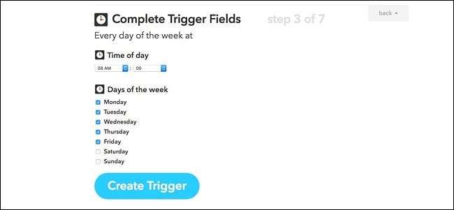 จากนั้นเลือกทริกเกอร์ที่คุณต้องการ การเลือก“ ทุกวันในสัปดาห์ที่” จะช่วยให้คุณสามารถเลือกวันที่สูตรจะทำงานได้ มิฉะนั้นคุณสามารถเลือก "ทุกวันเวลา"