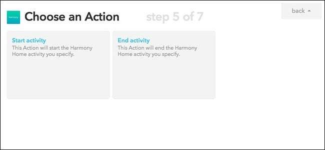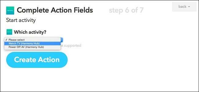 ภายใต้“ กิจกรรมใด” ในเมนูแบบเลื่อนลงเลือก Harmony Activity ที่คุณต้องการเปิดใช้งานจากนั้นคลิกที่ "Create Action"