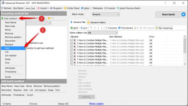 เรียกใช้โปรแกรมเมื่อคุณติดตั้งเสร็จแล้ว หลังจากนั้นให้เปิดโฟลเดอร์เสียงของคุณและถ่ายโอนไฟล์เสียงของคุณไปยังแอป Advanced Renamer โดยการลากไฟล์ของคุณไป