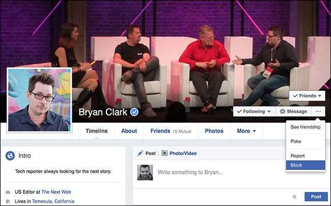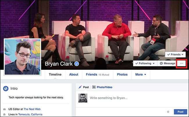 หากต้องการบล็อกคนบน Facebook จากเว็บเบราว์เซอร์ของคุณไปที่หน้าโปรไฟล์ของพวกเขาแล้วแตะจุดสามจุดที่มุมล่างขวาของรูปภาพปก