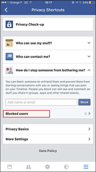 หากต้องการเลิกบล็อกใครบางคนบน Facebook ให้ไปที่ทางลัดความเป็นส่วนตัว> ฉันจะหยุดไม่ให้ใครมารบกวนฉันได้อย่างไร บนเว็บไซต์หรือแอพมือถือ
