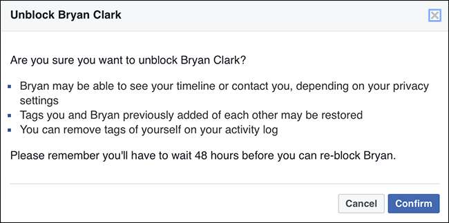ตอนนี้พวกเขาจะถูกปลดบล็อก หากต้องการเชื่อมต่อกับพวกเขาอีกครั้งคุณจะต้องเพิ่มพวกเขาเป็นเพื่อนอีกครั้ง