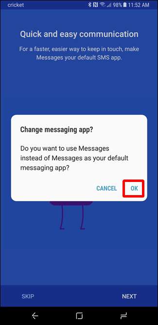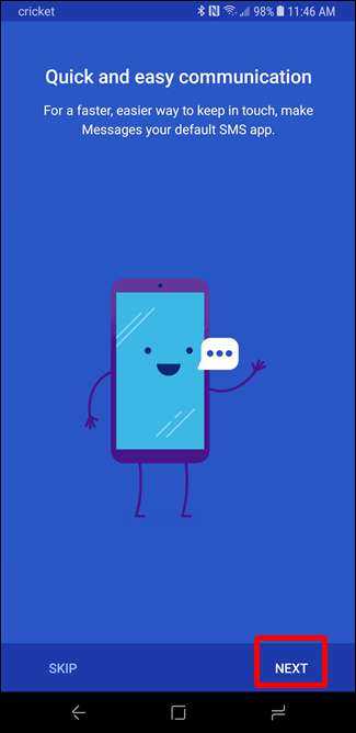ในการดำเนินการนี้ให้เปิดขึ้น โดยจะให้ข้อมูลสั้น ๆ เกี่ยวกับสิ่งที่แอปทำ เพียงแตะ“ ถัดไป” จากนั้น“ ตกลง” ในป๊อปอัปเพื่อตั้งค่าข้อความเป็นค่าเริ่มต้น