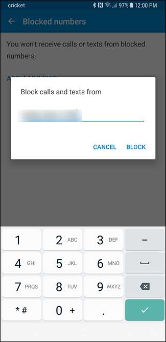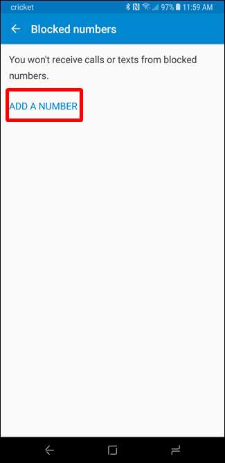 คลิกที่ "เพิ่มหมายเลข" จากที่นี่คุณจะต้องป้อนหมายเลขที่คุณต้องการบล็อกจากนั้นแตะ "บล็อก" peasy ง่าย