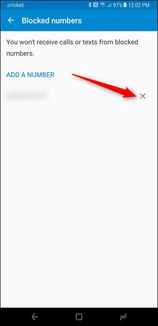 เมื่อใดก็ตามที่คุณต้องการปลดบล็อกหมายเลขเพียงแค่กลับไปที่ข้อความ> ผู้ติดต่อที่ถูกบล็อกแล้วแตะ "X" ที่อยู่ถัดจากหมายเลขนั้น