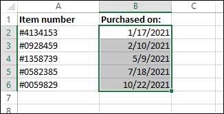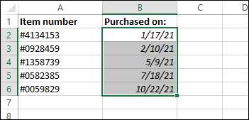 ที่จะเริ่มต้น, เปิดสเปรดชีต Excel ที่มีวันที่ที่คุณต้องการฟอร์แมตใหม่ เลือกเซลล์ที่เก็บแต่ละวันโดยคลิกและลากเมาส์เหนือพวกเขา