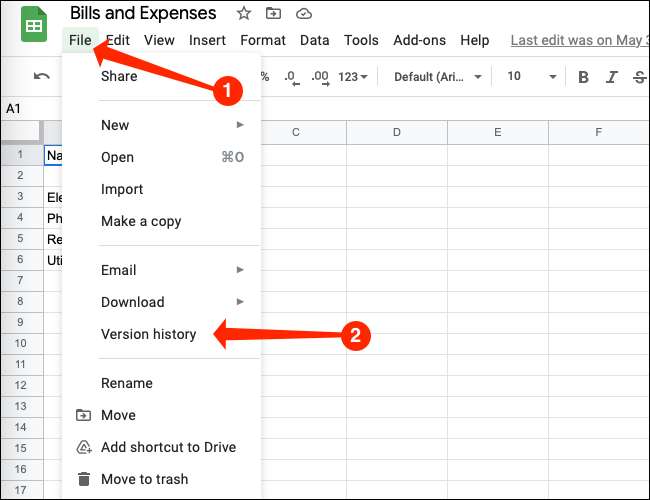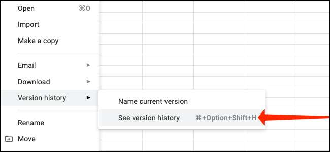หรือในแผ่น Google คุณสามารถนำทางไปยังไฟล์ & GT; ประวัติรุ่นในแถบเมนู