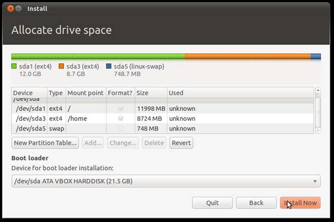 หากคุณมีอาการเท้าเย็นคุณสามารถออกจากการติดตั้ง ณ จุดนี้ได้โดยไม่ต้องกลัวข้อมูลสูญหาย ไม่มีอะไรเกิดขึ้นในดิสก์ของคุณจนกว่าคุณจะกด "ติดตั้งทันที" คุณจึงสามารถย้อนกลับและแก้ไขสิ่งต่างๆได้ตามต้องการ