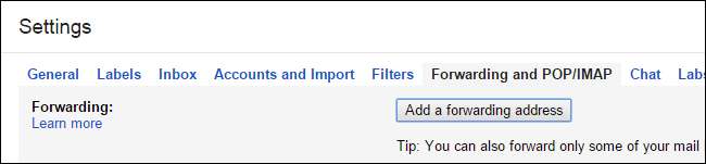 กลับไปที่เมนู "การส่งต่อและ POP / IMAP" ตอนนี้คุณจะเห็นว่าการส่งต่อถูกปิดใช้งานโดยค่าเริ่มต้นและที่อยู่ใหม่จะแสดงรายการ (ดังที่เห็นในภาพหน้าจอด้านบน) นี่เป็นวิธีที่ดีคุณต้องอนุญาตที่อยู่เพื่อให้สามารถใช้งานได้ทั่วไป แต่คุณไม่ต้องการส่งต่ออีเมลทั้งหมดของคุณไปยังที่อยู่นั้น