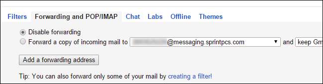 คลิก "เพิ่มที่อยู่สำหรับส่งต่อ" เมื่อได้รับแจ้งให้ใส่หมายเลขโทรศัพท์และเกตเวย์ SMS ในรูปแบบที่ผู้ให้บริการมือถือของคุณกำหนด ตัวอย่างเช่นหากคุณใช้ Spring รูปแบบคือ [email protected]
