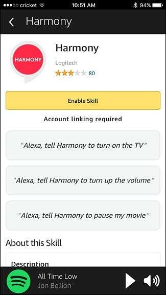 เมื่อ Harmony Hub ของคุณได้รับการอัปเดตคุณจะต้องกลับไปที่แอป Alexa และติดตั้งทักษะ Harmony อีกครั้งรวมทั้งลงชื่อเข้าใช้บัญชี Logitech ของคุณ (อาจเป็นข้อบกพร่องแปลก ๆ ที่ทำให้เกิดปัญหานี้)