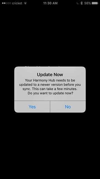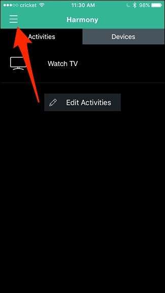เมื่อคุณเปิดใช้งานทักษะ Harmony คุณจะต้องลงชื่อเข้าใช้บัญชี Logitech ของคุณและหลังจากนั้นคุณอาจต้องอัปเดต Harmony Hub ของคุณก่อนจึงจะสามารถใช้กับ Alexa ได้ หากเป็นเช่นนั้นให้เปิดแอป Harmony บนโทรศัพท์ของคุณแล้วแตะที่ปุ่มเมนูที่มุมบนซ้าย