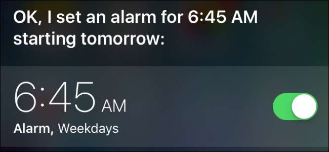 คุณยังสามารถพูดว่า“ ปลุกฉัน” หรือ“ ปลุกฉัน” แทน“ ตั้งนาฬิกาปลุก” สำหรับคำสั่งใด ๆ เมื่อคุณบอกเธอว่าจะตั้งปลุกอะไร Siri จะตอบกลับพร้อมคำยืนยันซึ่งคุณสามารถเปิดหรือปิดการปลุกได้