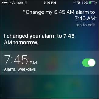 หากคุณต้องการเปลี่ยนแปลงการเตือนเพิ่มเติมคุณจะต้องเปิดแอปนาฬิกาและดำเนินการด้วยตนเอง หรือคุณสามารถใช้ Siri เพื่อลบการปลุกแล้วสร้างใหม่