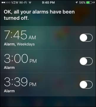 และคุณก็มี Siri มีหลายวิธีในการควบคุมการเตือนของคุณ สำหรับบางสิ่งเช่นการปรับเปลี่ยนการตั้งค่าของนาฬิกาปลุกการใช้แอปนาฬิกาอาจจะง่ายกว่า แต่คุณต้องยอมรับว่าการตั้งปลุกด้วยเสียงนั้นดีถ้าคุณขับรถหรือใช้มือไม่ได้ไม่ว่าด้วยเหตุผลใดก็ตาม และการปิดการปลุกทั้งหมดในครั้งเดียวก็มีประโยชน์เช่นกัน