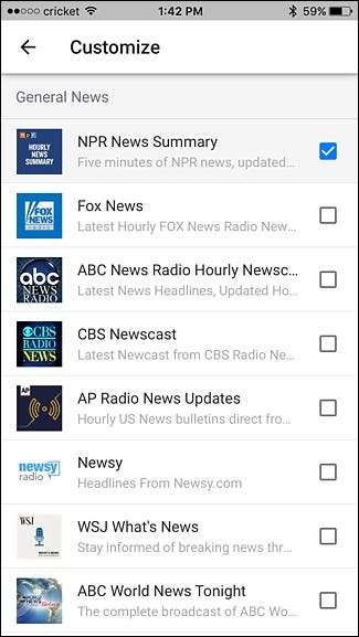 การเปลี่ยนแปลงใด ๆ จะบันทึกทันทีและตอนนี้คุณสามารถออกจากแอพและใช้ประโยชน์จากแหล่งข่าวใหม่ของคุณได้ เมื่อพูดว่า“ Ok Google ฟังข่าว” เวอร์ชันเสียงของแหล่งข่าวที่คุณเลือกจะเล่นทีละรายการ เมื่อใดก็ตามที่คุณต้องการหยุดฟังเพียงพูดว่า“ Ok Google หยุด”