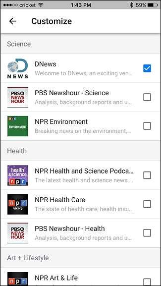 เพียงวางเครื่องหมายถูกข้างแหล่งข่าวที่คุณต้องการใช้และยกเลิกการเลือกแหล่งที่มาที่คุณไม่ต้องการใช้