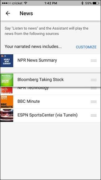 จากนั้นแตะที่ด้านขวาสุดของแหล่งข่าวค้างไว้เพื่อลากรายการขึ้นหรือลงเพื่อจัดลำดับความสำคัญของสิ่งที่คุณต้องการฟังก่อน