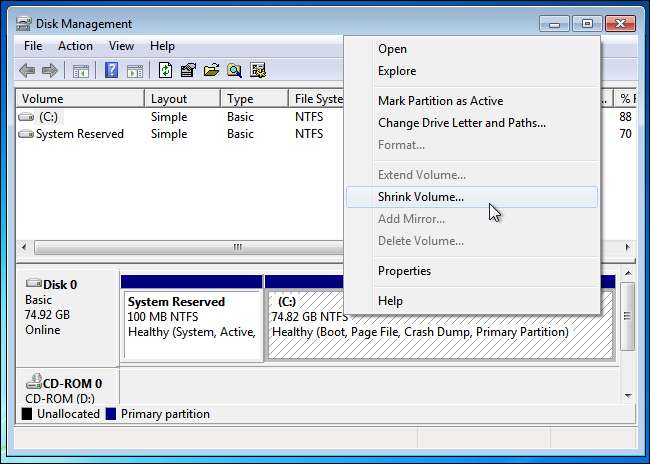 ตอนนี้คุณจะต้องลดขนาดพาร์ติชัน Windows ที่มีอยู่เพื่อให้มีพื้นที่สำหรับ Windows สำเนาที่สอง หากคุณมีพื้นที่ว่างเพียงพออยู่แล้วหรือคุณกำลังติดตั้ง Windows สำเนาที่สองลงในฮาร์ดดิสก์อื่นทั้งหมดและมีพื้นที่ว่างคุณสามารถข้ามไปได้