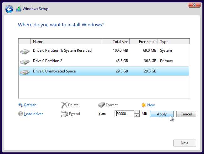 เลือก“ พื้นที่ที่ไม่ได้จัดสรร” และสร้างพาร์ติชันใหม่ บอกให้ Windows ติดตั้งตัวเองลงในพาร์ติชันใหม่นี้ อย่าลืมเลือกพาร์ติชันที่มีเวอร์ชันของ Windows ที่ติดตั้งในระบบของคุณในปัจจุบันเนื่องจาก Windows สองเวอร์ชันไม่สามารถติดตั้งบนพาร์ติชันเดียวกันได้