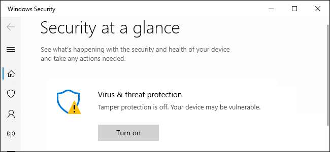การอัปเดตเดือนพฤษภาคม 2019 ของ Windows 10 นำคุณลักษณะ "การป้องกันการงัดแงะ" ใหม่มาสู่ Windows Security หรือที่เรียกว่า โปรแกรมป้องกันไวรัส Windows Defender . การป้องกันการงัดแงะถูกปิดโดยค่าเริ่มต้นและความปลอดภัยของ Windows ระบุว่า“ อุปกรณ์ของคุณอาจมีช่องโหว่” เว้นแต่คุณจะเปิดใช้งาน
