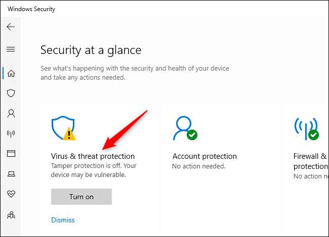 หากไม่มีให้คลิกไอคอน "การป้องกันไวรัสและภัยคุกคาม" รูปโล่