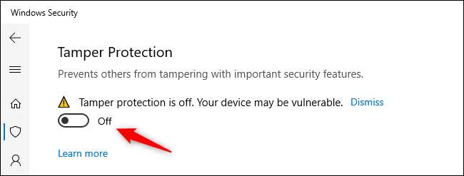 ค้นหาการตั้งค่า Tamper Protection และคลิกสวิตช์เพื่อตั้งค่าจาก "ปิด" เป็น "เปิด"