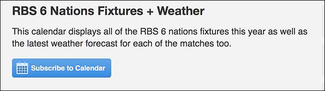 หากคุณใช้แอปปฏิทินบนคอมพิวเตอร์หรือสมาร์ทโฟนให้คลิกปุ่ม“ สมัครสมาชิกปฏิทิน” เพื่อเพิ่ม ปฏิทินทั้งหมดใช้รูปแบบ iCal ซึ่งโดยพื้นฐานแล้วเป็นสากล หากคุณโชคดีการกดปุ่มนี้ควรตรวจหาแอปปฏิทินของคุณโดยอัตโนมัติและสมัครรับปฏิทินให้คุณ