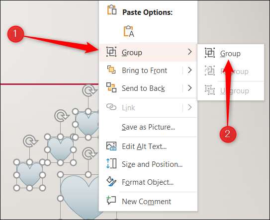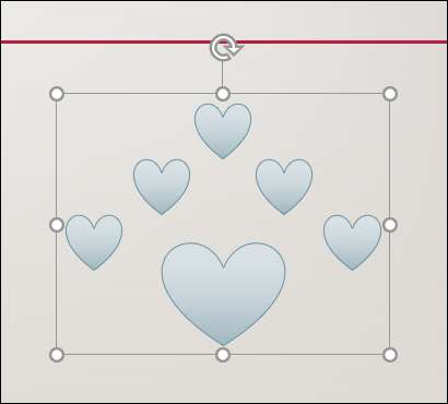 ตอนนี้วัตถุที่เลือกทั้งหมดถูกจัดกลุ่มเข้าด้วยกันและ PowerPoint จะปฏิบัติต่อพวกเขาเป็นวัตถุเดียว