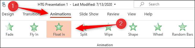 เมื่อคุณใช้แอนิเมชั่นมันจะส่งผลกระทบต่อวัตถุทั้งหมดที่อยู่ในกลุ่มนั้น ในการตั้งค่าภาพเคลื่อนไหวคลิกกลุ่มและในแท็บ "ภาพเคลื่อนไหว" เลือกภาพเคลื่อนไหวที่คุณต้องการใช้จากตัวเลือก "ภาพเคลื่อนไหว" เราจะใช้แอนิเมชั่น "ลอย" ในตัวอย่างนี้