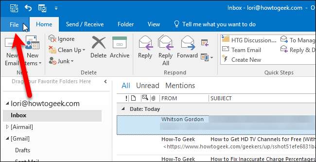 เมื่อคุณพร้อมก็ถึงเวลานำเข้าไฟล์รายชื่อติดต่อใหม่ของคุณไปยัง Outlook เปิด Outlook แล้วคลิกแท็บ“ ไฟล์”