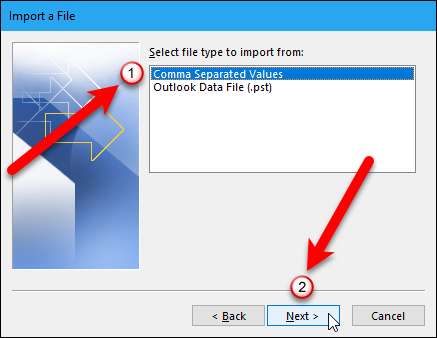 เลือก“ Comma Separated Values” แล้วคลิกปุ่ม“ Next”