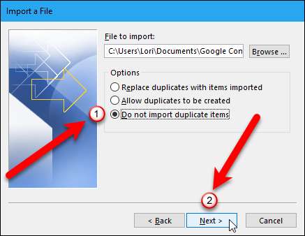 ภายใต้ตัวเลือกให้ตัดสินใจว่าคุณต้องการนำเข้ารายการที่ซ้ำกันหรือไม่ คุณสามารถประหยัดเวลาได้ในภายหลังโดยเลือก“ อย่านำเข้ารายการที่ซ้ำกัน” ในตอนนี้ คลิกปุ่ม "ถัดไป"