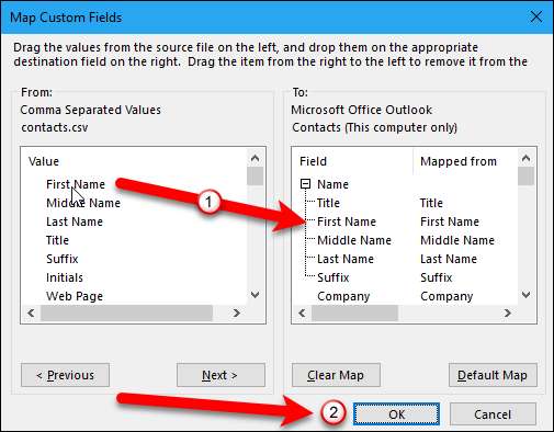 การแมปฟิลด์ที่กำหนดเองหมายความว่าอย่างไร เพียงแค่บางช่องในไฟล์. csv ที่มาจาก Gmail อาจไม่ตรงกับสมุดที่อยู่ปลายทางที่คุณกำลังนำเข้าซึ่งหมายความว่าคุณจะต้อง "แมป" ตามที่กล่องโต้ตอบอธิบายคุณต้องลากค่าในไฟล์. csv ทางด้านขวาไปยังฟิลด์ใน Outlook ทางด้านซ้ายที่ใกล้เคียงที่สุด