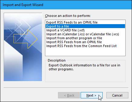กล่องโต้ตอบตัวช่วยสร้างการนำเข้าและส่งออกจะปรากฏขึ้น เลือก“ ส่งออกเป็นไฟล์” ภายใต้เลือกการดำเนินการที่จะดำเนินการจากนั้นคลิกปุ่ม“ ถัดไป”