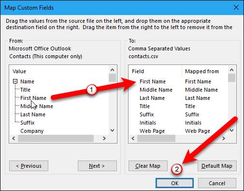 การแมปฟิลด์ที่กำหนดเองหมายความว่าอย่างไร เพียงแค่บางฟิลด์ในสมุดรายชื่อ Outlook ของคุณอาจไม่ตรงกับปลายทางที่คุณกำลังนำเข้าในไฟล์. csv ซึ่งหมายความว่าคุณจะต้อง "แมป" ตามที่กล่องโต้ตอบอธิบายให้ลากค่า Outlook จากรายการทางด้านขวาไปยังฟิลด์ในไฟล์. csv ทางด้านซ้ายที่ใกล้เคียงที่สุด โอกาสที่คุณอาจไม่จำเป็นต้องยุ่งกับเรื่องนี้ แต่ควรทราบในกรณีที่คุณนำเข้ารายชื่อติดต่อ Outlook และลงเอยด้วยช่องที่ไม่ตรงกัน