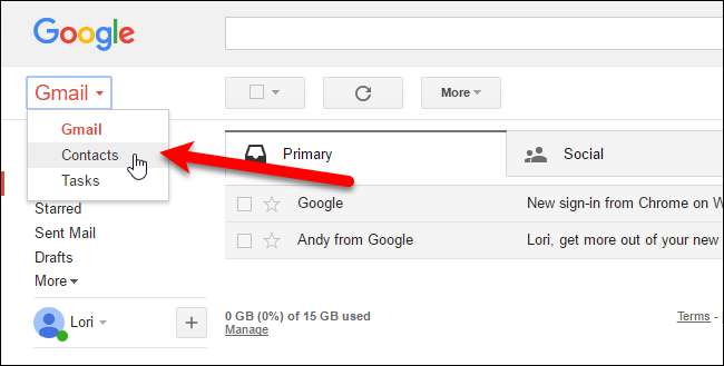 ในการส่งออกผู้ติดต่อจากบัญชี Gmail ของคุณให้เปิดเบราว์เซอร์และลงชื่อเข้าใช้บัญชีของคุณ จากนั้นคลิกที่“ Gmail” จากนั้นเลือก“ ผู้ติดต่อ” จากเมนูแบบเลื่อนลง