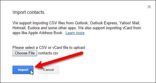 คลิกปุ่ม“ นำเข้า” ในกล่องโต้ตอบนำเข้าผู้ติดต่อเพื่อเสร็จสิ้นการนำเข้ารายชื่อจากไฟล์. csv