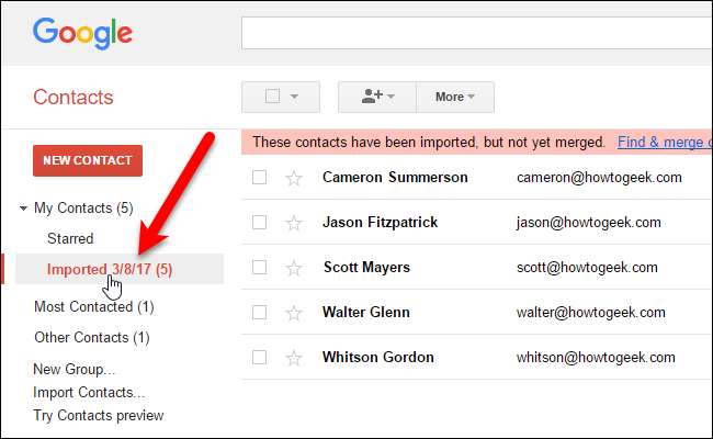 รายชื่อติดต่อที่นำเข้าใหม่จะไม่รวมเข้ากับรายชื่อผู้ติดต่อหลักอย่างน้อยก็ไม่ได้อยู่ใน Gmail แต่จะได้รับกลุ่มของตนเอง