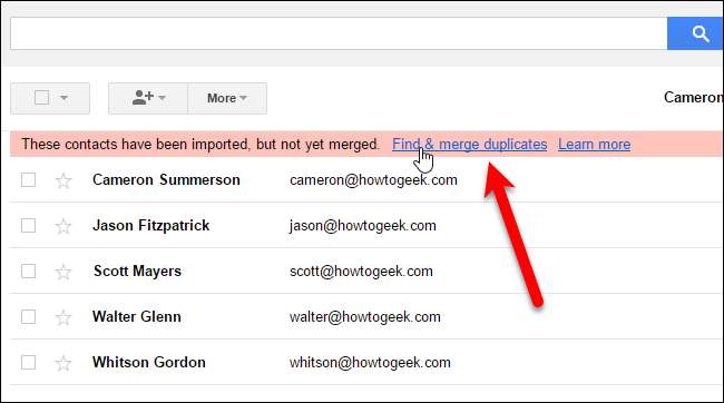 หากคุณคลิกที่กลุ่มผู้ติดต่อที่นำเข้าคุณจะสามารถรวมและลบรายการที่ซ้ำกันได้ อาจใช้เวลาเล็กน้อยในการล้างข้อมูลทั้งหมด แต่ถ้าสิ่งต่างๆเป็นระเบียบคุณสามารถลบผู้ติดต่อที่นำเข้าของคุณกลับไปที่ Outlook และดำเนินการอีกครั้งได้ตลอดเวลาคราวนี้ใช้ฟังก์ชันฟิลด์แผนที่หรือ Excel เพื่อ แก้ไขปัญหา