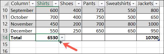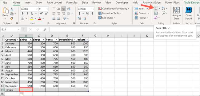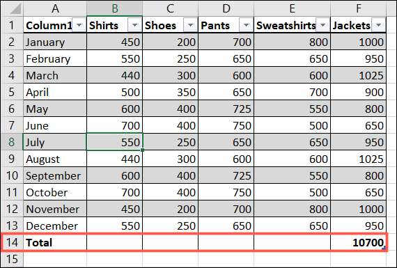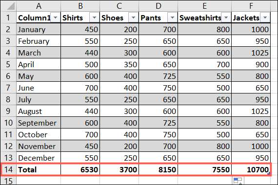 คุณควรเห็นผลรวมสำหรับคอลัมน์ทั้งหมดในตาราง Excel ของคุณ