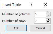 เมื่อหน้าต่างตารางแทรกเล็ก ๆ เปิดขึ้นให้เลือกจำนวนคอลัมน์และแถวที่คุณต้องการสำหรับตารางของคุณและคลิก "ตกลง"