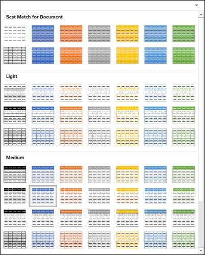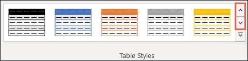 หรือคลิกลูกศรที่เรียงรายที่ด้านล่างเพื่อแสดงสไตล์ที่มีอยู่ทั้งหมด หากคุณเห็นคนที่คุณต้องการใช้เพียงเลือกมันและตารางของคุณจะอัปเดตทันที